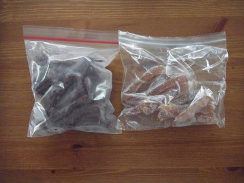 採の国の今日は朝の内雨その後曇りの予報です、部屋は暗い状態です。今の Pearun の部屋の様子です。(約7時~10時頃の時間限定Live)・節電の為本日のLiveは中止します。 ザボンと文旦の皮で作ったピールザボンと文旦の皮で作ったピールが完成した様です、写真の左側がチョコレートコーティングした物で、右はザラメの砂糖を付けた物です、見た目はお菓子らしく仕上がっています。出来上がったピールは少しずつビニール袋に小分けして付箋紙に名前を書いていたので、どうやらバイト仲間ににも、おすそ分けする様です。早速出来上がりを試食しましたが、そこはやっぱり甘いお菓子ですので沢山は食べられませんがほろ苦さは大人の味で、コーヒーを飲みながら食べると美味しかったです。
