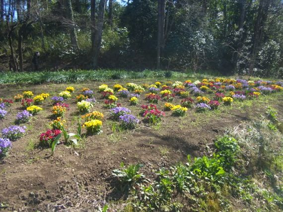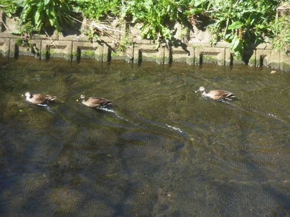 公園を一回りしてしていたら、川の中には住み着いているカモたちも、のどかにスイスイと泳いでいました、公園の橋の近くには花壇もあって、沢山の花が植えられていました。