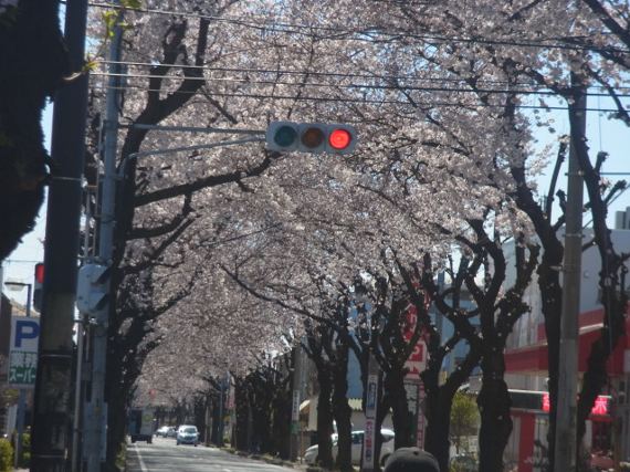 もう一カ所の桜の名所、桜のトンネルの有る場所を見に行って来ました、この通りに業務スーパーがあるので、買い物序なんですけど、もうちょっと花弁が道路に舞っていましたが、ほぼ満開で綺麗でした。