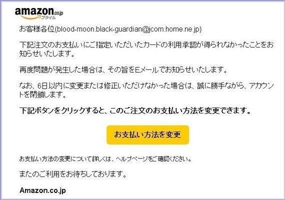 本日届いた迷惑メール、絶対にクリックしない様にしましょう。