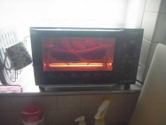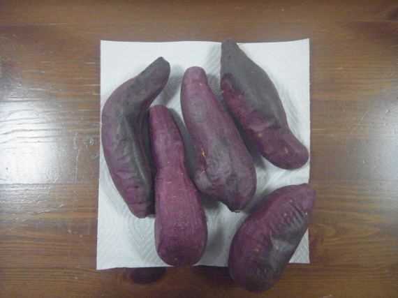 早速水洗いして、焼き芋にしました、1000Wで 30分ほどで焼き上がりました、念のため楊枝を刺して見たら、すんなりと刺さったので、美味しく焼けている様です。