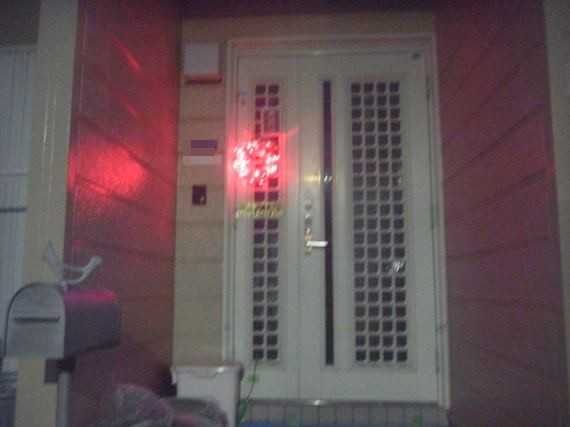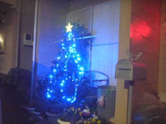 気合も入っていないので、昨日の午前中3時間ほどで、簡単に飾り付けをして、イルミネーションも青一色1個とリースは赤一色にしました。