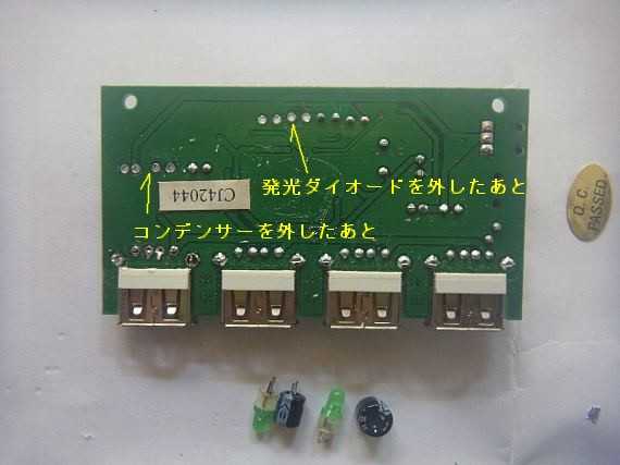 結果はご覧の様にいとも簡単に綺麗に、部品の取り外しが出来ました、流石その為の道具ですね、今回はコンデンサーと発光ダイオードを外して見ました。