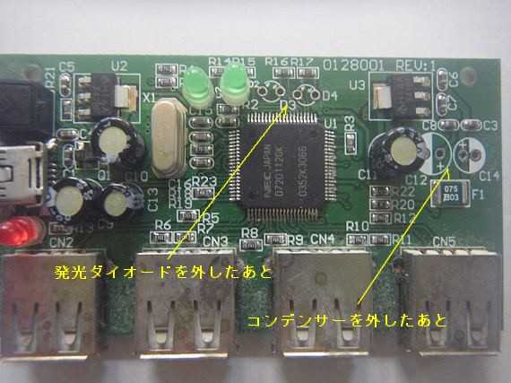 取り合えず初期不良が無いか、白光 FR301半田吸い取り器のテストをしました、何でテストするかと対象物を探し、壊れたUSBハブを分解し、基板から部品の取り外しをして見ました。