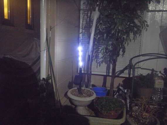 夕方暗くなって何気に外に出て見たら、何と分解した飾り物のLEDが明るく点灯しているではないですか、これは何かに使えそうだなと言う事で、全部捨てちゃわなくて良かったです。