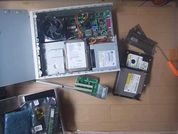 パソコンの無料回収をします何てチラシが入っていたので、廃棄用のパソコンを組み立てました、1台目はメモリーを外し HDDを先日オール0を書き込んだ 、容量の小さなHDDと取り換えました。