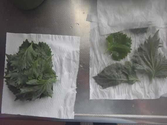 密集していた大葉を少し間引きして、綺麗な葉を選んで収穫しました。