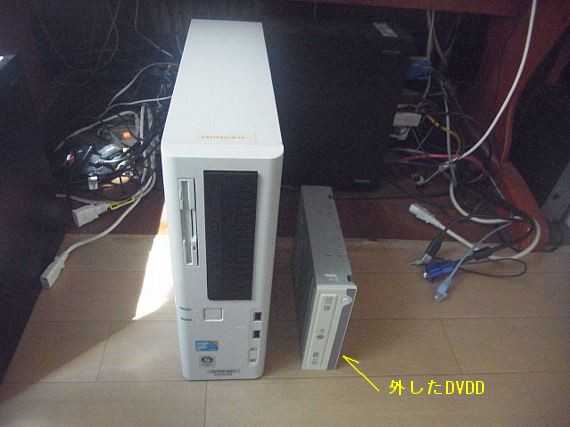 この前廃棄したパソコンに乗っていた、スリムDVDDを古いパソコンのDVDDと取り替えました。