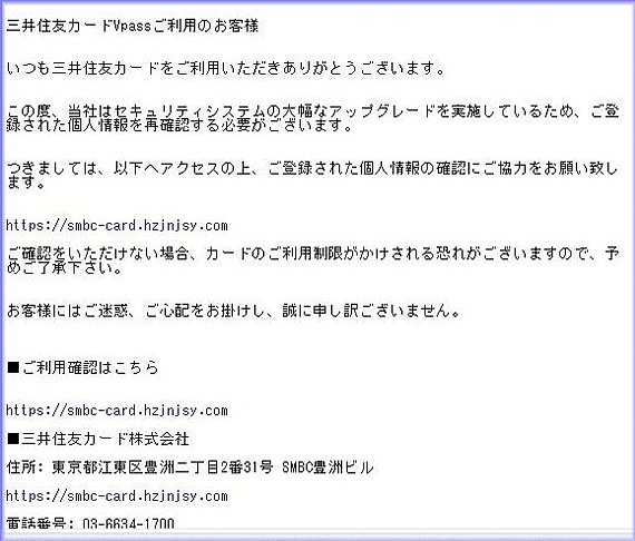 本日届いた迷惑メール、絶対にクリックしない様にしましょう。