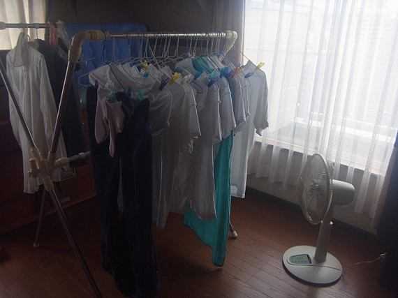 それでも雨の降らない日は窓を少し開けて、完全に乾いていない洗濯物を吊るして、タイマーで扇風機を付けて置くと、次の日は乾いています。