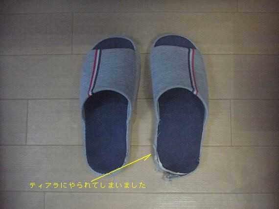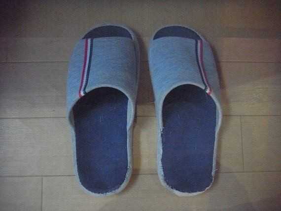 道具が揃ったのでスリッパの修理に取り掛かりました、まず剥がされた裏のスポンジなどを、接着剤で接着し周りの布の部分も、ボロボロになった部分は接着剤で固め、端の布の部分を出来るだけ縫い付けて何とか、履ける状態にしましたので、もう暫く使えそうです。
