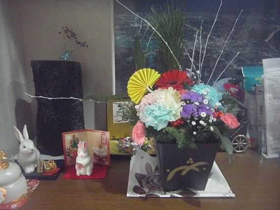 今朝見たら玄関に又何か飾り物が増えていました、30日の夜帰って来てから飾った様です。