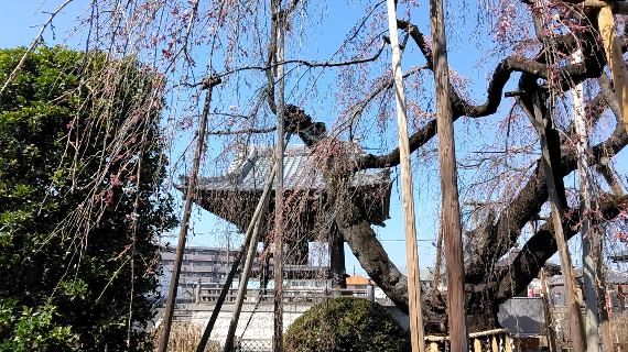 天気が良かったので近くのお寺さんの、早咲きの天然記念物の枝垂れ桜を見に行って来ました。