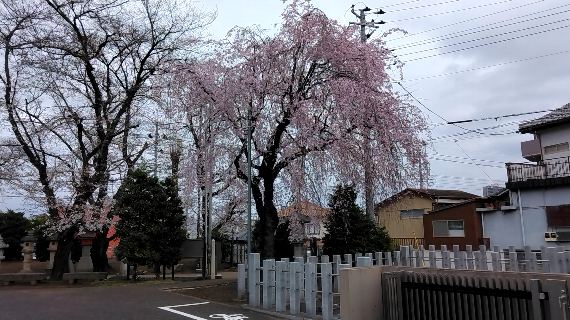 近くの神社の枝垂れ桜