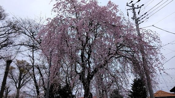近くの神社の枝垂れ桜は、お寺さんの枝垂れ桜と違う種類なのか満開でした、色もちょっと濃いピンク色で綺麗でした。