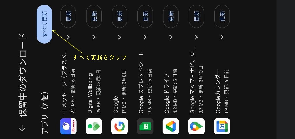 毎日アプリの更新が有って、多い時は十数個も更新がありますので、アプリの更新に使われるデーター量もバカにならないので、こちらはWiFi接続時のみアプリ更新が出来る様に設定し、毎朝手動でアプリの更新をしています。
