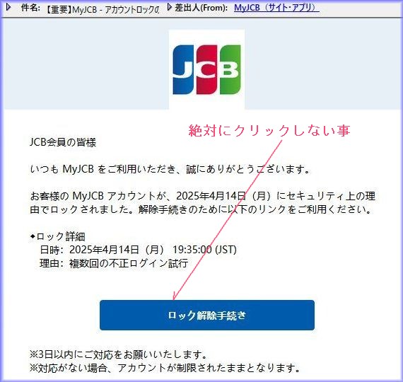 本日届いた迷惑メール、絶対にアクセスやクリックは、しない様にしましょう。