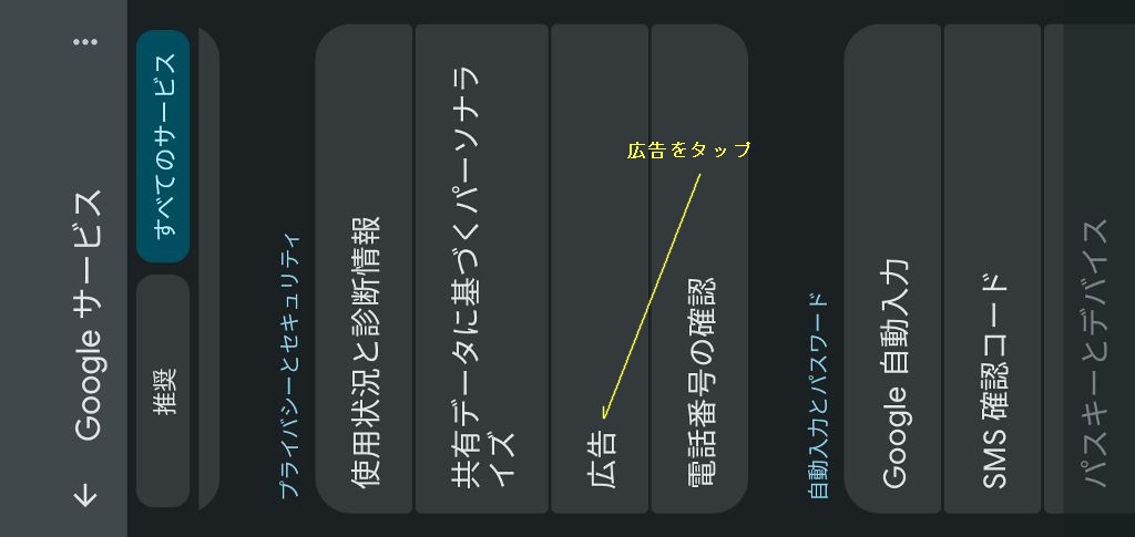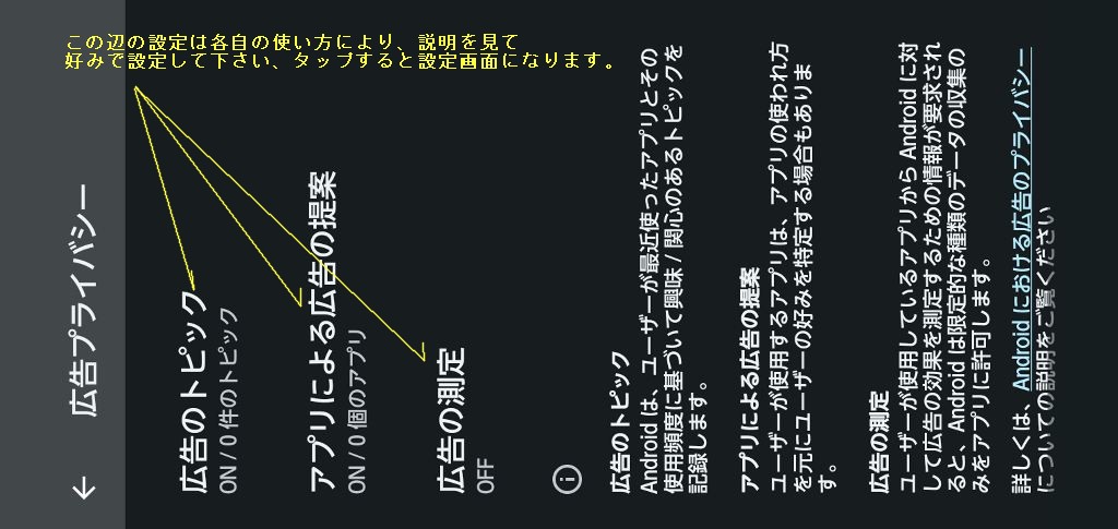 広告プライバシーにほかにも項目が有るので各自の判断で設定