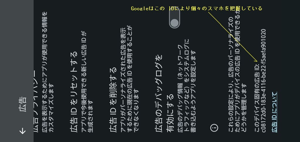 今回はスマホ固有の広告ID:で情報が収集され、位置情報から買い物情報さらに何処のサイトをアクセスしたか、など色々の情報が収集されて、その情報から個人が好むような広告を、送り付けてくる仕組みになっていますので、必要最小限のデーターのみ提供するように、設定するのがおすすめです。