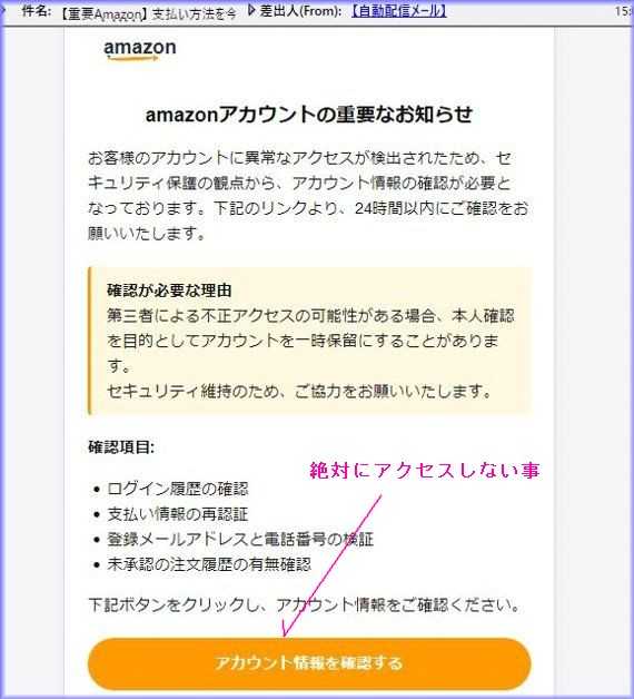 本日届いた迷惑メール、絶対にアクセスやクリックは、しない様にしましょう。