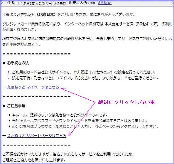 本日届いた迷惑メール、絶対にアクセスやクリックは、しない様にしましょう。