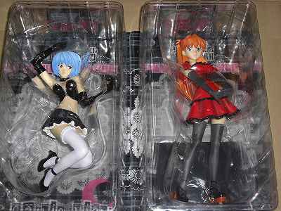 こんばんは、相変わらず風邪が治らず禁煙生活続行中のバリットくんです。遂に息子にも移してしまい嫁にダダ怒られです(´・ω・)ショボーンもう、そんだけ禁煙が続くんならタバコ止めりゃいいじゃんと思うでしょうが、僕が生きていく上でタバコとコーヒーとアスカは欠かせないものですから(爆)さてさて、先日レイの旦那さんよりバトンを受け取りましたし、アスカの旦那と公認も頂きましたので、バリット目線で紹介をば・・・何を紹介かって?これですよ。 エヴァンゲリオン ゴシックナイトフィギアです。レイの旦那さんいわく、ガレキのアミューズ用量産タイプらしいです。もっとも僕はオリジナルは持ってませんが、アスカのゴスに目の無い僕はもろツボりましたよ。ただ、予約販売との事だったので、念の為発売日を待って入札、購入しました。出来はというと、プロポーションはフィギア用に等身をリファインしてあるのではなく、どちらかというと貞本氏の絵の等身(若干頭大き目)に忠実に造ってある様な感じでした。価格は二個1セットで2K、送料も東北からなのに600円と中々良心的でした。普段はアスカのみの購入ですが、今回はレイの出来もなかなか良さそうだったので、セットで購入しちゃいました。 ちょっと、オパーイが強調されすぎか?なんか勿体無いし、ショーケースもパンパンなので、パッケージから出さずに実機の上に飾ってます。 因みに、エヴァのスロ、パチ共にマイホールでは無く、PCルーム兼コレクションルーム、通称バリットの穴に置いてます。あくまで、エヴァグッズですから(爆)あと、メイドの件。昨日救出した猛獣王のお店の特価コーナーにてハケーンしました。どう見ても新品未開封で3Kはお買い得と思います、思い込んでます・・・(実はこのシリーズの相場が良く判ってない) セイバーさんの1/6メイドバージョン。このスケールで、アミューズ品でないので、結構お買い得ですよね?ね?本気で展示スペースの拡大を考えないと(汗)変なお店に寄っちゃ駄目ですよと皆に言われながらついつい吸い込まれてしまうバリットくんでしたー(^^)ノシ