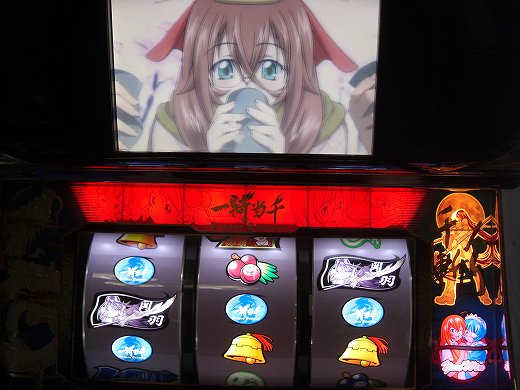こんばんわ、バリットくんです。今日は観たいテレビがあるからと小学生のような理由で定時で帰宅w現在、その「踊る大警察24時」を観ながらブログの更新中です。昨日、昼間はやっぱり暑いとか書いてましたが、今日はいきなり寒いですね。明日はもっと寒くなるそうですが、まあ本来の季節なりって事でしょうか。昨日の一騎当千の下パネルの外し方について抜けてた事をちょいと追記しておきました。んで夕べブログの更新後、無事下パネルの蛍光灯も点灯したので、画像採取の続き~wペシペシと130G程回したとこでハレルヤっと典偉タソカットインw普段はオヤジ打ち、熱めの演出時は中押しします。まが玉・青7・まが玉の青7を上段にビタ押し。ビタ止まりでチェリー確定、なのかな?コレが一コマすべると1枚役。どちらにしても熱めですね。で、カットインがあったので重複率50%(だったっけ?)の青チェリーを狙ってみます。予想通り青チェリーが止まり、続いて右リールも停めると、プレミア?画像と共にボーナス確定の音声告知。え?画像がチイサイ?んじゃアップでwうん、中々ヨロシイwあ、劇中での典偉タソの普段着はゴスロリですぉwトマちゃ~んまだまだ美味しそうな画像が眠ってるみたいだぉwwwあ、この中押し手順は僕がテキトーに導き出したので、突っ込みをお待ちしておりますw他にも面白い打ち方があったら教えてクラハイ。では、また明日~(^^)ノシ