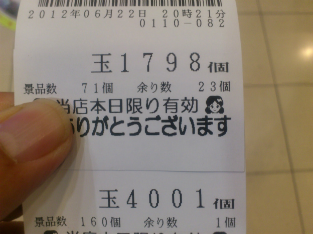 こんばんわ、バリットくんです。いやーなんか今日はえらい蒸し暑かったですね。7月も目の前だというのに朝晩は結構涼しい日が続いてましたがやっと夏らしくなって来たのかな。今日は久しぶりに20スロを腰を据えて打って来ました。取り敢えず基地外仕様のラインバレルを見てみましたが全く出てねーでやんの。もうね、全台お通夜wやっぱアレだけ気がクルッた仕様だとお店も腰が引けてるんでしょうか?それとも給料日直後だからガッツリいくつもりなのかね?お通夜の島を横目に見ながら店内をフラフラ。呼ばれた気がしたんで一番履歴がましなマクロスFに着席。投資4kでバケを引き、何がどうなったかさっぱり判んないけどボヌスとARTの連打開始。はい、完全におっぱじまってますw今更ですが楽曲がいいですよね。ART中もいつでも自由に楽曲が選べる仕様なのもファンには地味に嬉しいです。漏れのベスト3は好きな順に「射手座☆午後九時Don't be late」、「ライオン」、「トライアングラー」ですね。ART中はひたすら獅子座、ビッグ中はライオンとトライアングラーのローテーションで楽しみましたwまあ、色々ありましたが久しぶりに店スロで全てがいい感じに噛み合いズドーンと乗せたりwトライアングルなんとかwでランカが選ばれなんかハズレかチャンス目か判んないけど良い感じで引きまくったらこんなことにwwwART中に始まったエピソードの25話「アナタノオト」を観て鳥肌立ちましたw唯一残念なのはマクロスといえば板野サーカス。あの躍動感のある動きと独特のカメラアングルがART中は全く生かされてないのよね。まあ、今作には板野は関わってないので仕方ないけど同じSANKYOのマクロスではしっかり再現されてたんでせめて真似事だけでもして欲しかったな。ほぼ一撃でいっぱい出たw三時間ダラダラと出っぱなし&至福の時でした♪この直後、ビッグとART(40G)を追加してフィニッシュ、久しぶりに20スロでガッツリゆわしましたwうん、これでマクロスFは良かった箱に封印w安くなったら家スロ導入ですねwんで、疲れたけどルンルンで帰宅。ん?久しぶりになんか届いてるな(爆)今は亡きドラゴン7の箱ですねw詳細はまた後日、ではではノシ