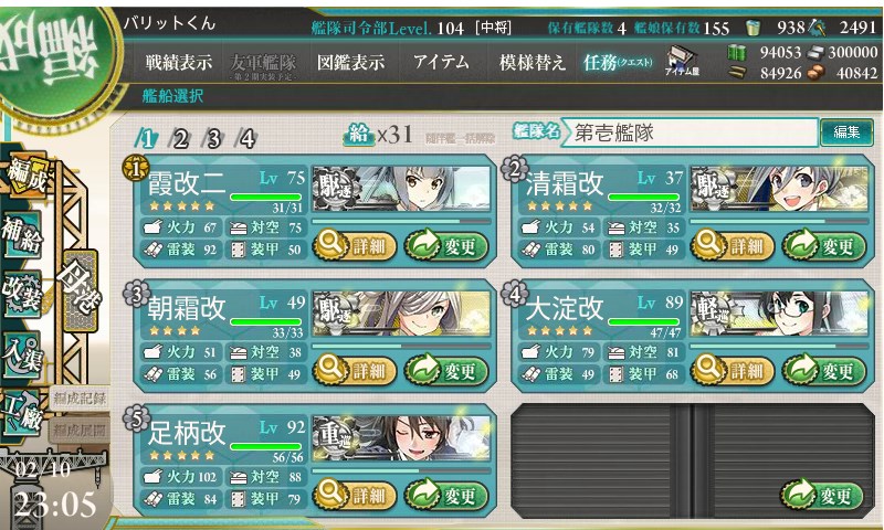 後は天命を待つのみ・・・なバリットくんです、こんばんわ。礼号組の駆逐艦を急遽育成し何とか間に合わせた(;^ω^)足柄さん、大淀さんは既に十分レベルが足りてたけど霞改二は厳しかったー。駆逐艦を急遽改二レベルまで引っ張り上げるのってホント大変だよね。資材、資源もボーキが少々不安だがまあ、今回の作戦規模考えると大丈夫だろう。鋼材がカンストしてるのが大型艦を一切回してないのを雄弁に物語っているwで、運営伝聞を読んでるとどうもグラ子クル━━━━(゚∀゚)━━━━!?取り敢えず今夜は見に回って様子見。明日から本気だすwではではノシ