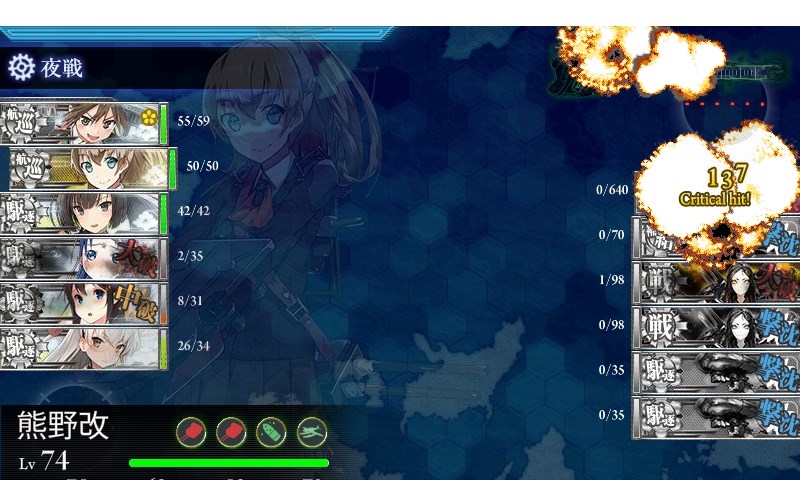 こんばんわ、バリットくんです。本日ようやくE-5突破、当然丙ですがね( ゚д゚)、ペッ止めはビタ押ししくじって薄っすらとしか写ってなく天に召されたかのような熊野さんw忙しくて一日2,3戦しか出来てなかったってのもあるけどタイトル通りのちょっと可哀想な子(色んな意味でw)の愚痴を聞いとくれ。何戦かやってみてボスに辿り着くもののほとんど削ることすらままならずこれ絶対むりだろ?とか思ってた。で、突破口を求めグーグル先生に'`ィ (゚д゚)/しつも~ん。で、ようやく航空隊の存在を知る。ええ、ええ、ツイッターでリリちゃんより航空隊がどうたらって返コメくれてたのよ。それをまるっと忘れてたアンポンタンだよwおかげでいらん苦労とストレスを・・・家電品やなんかも取り敢えず使ってみて判んないところを取説読む派なんでね。それでも結構苦労させられて夕べは家スロに逃げたりしてたんだけどさwしかし後2海域・・・間に合うのか?(;^ω^)取り敢えずご褒美の一式陸攻と飛燕とポーラたん♪ポーラたんはザラたん以上に盛り上がってるのねw折れそうな心を必死でつなぎ留め頑張ったよ。そのつなぎ留めてたもう一つの要員、いや要因wアッヒャッヒャ!ヽ(゚∀゚)ノアッヒャッヒャ!ええ、ええ、またですよんw秋月型 1番艦であり、ネームシップの秋月タソ、ついに我が軍門に下るwこの娘にもホントにお世話になってる。開幕戦の露払いは勿論、火力もスペック以上の結果を出してくれるすごい娘。スカートのスリットがもう少し深ければと思ったのは俺だけではないはずだw取り敢えずこの後E-6の情報を集めて風呂入って寝るwではではノシ