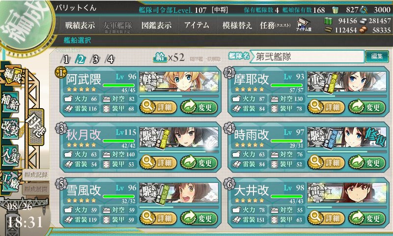 あ、途中大してハマらずに燃料、ボーキ各2万程消費してっから水上打撃の編成は心してかかるようにw