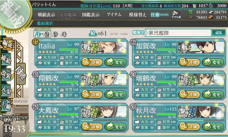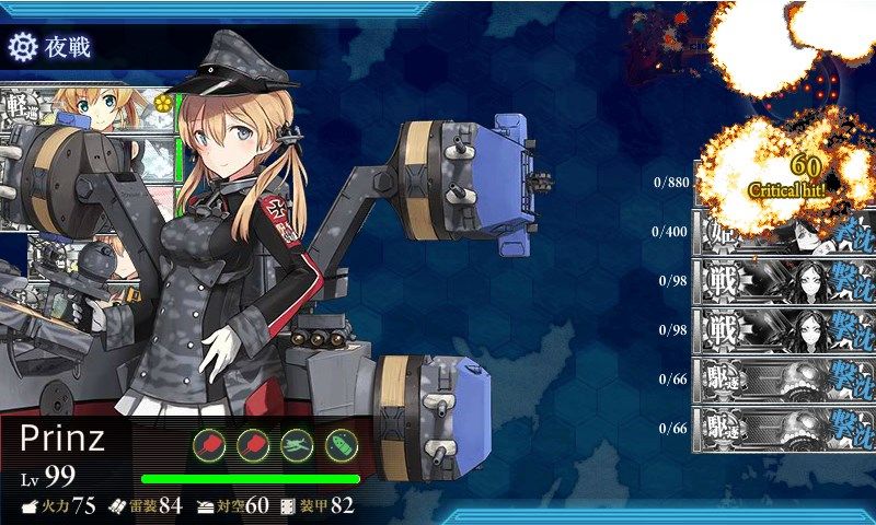 そこを無傷で突破出来ても80%を絶妙なタイミングで外してくる道中支援艦隊と無慈悲な一発大破の見事なコンビネーションで泥ハマりしてたのな。