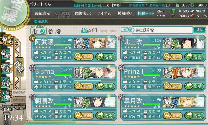 なんとか両方のギミック解除出来たんでいざ、「ぼくのかんがえたさいきょうのかんたい」で最終決戦に向け抜錨!
