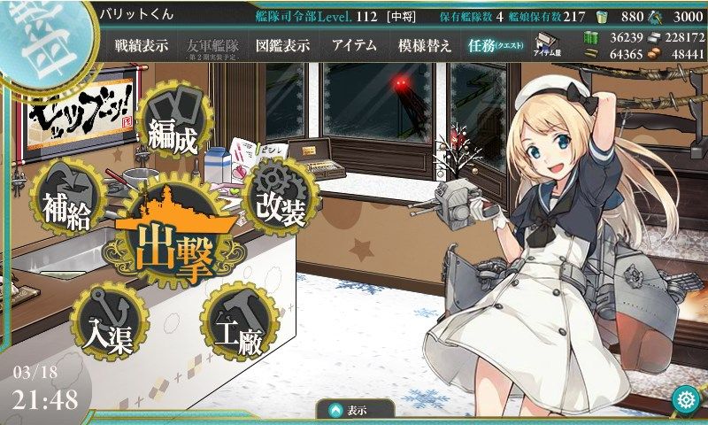 さてさて無事本イベ完走出来たんで取りこぼしてるレア艦掘りに勤しんでる毎日。