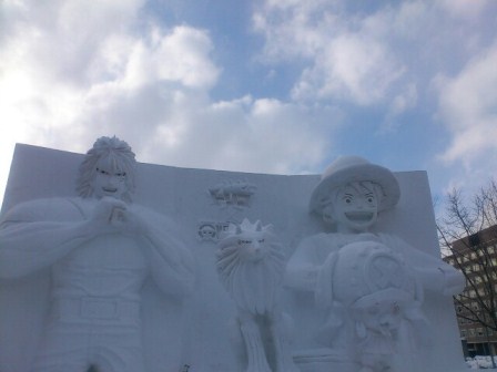 ワンピースの大雪像!先週の土曜日行ったんだけれど・・いい天気で、よかったです。ただ・・寒かったけど・・とても、楽しんできました。また来年も、いけるかな~~。。。