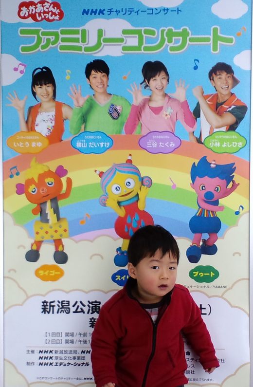 23日の土曜日に新潟テルサに行ってきました。子どもが喜ぶならとあまり期待せずについて行きましたが、たくみおねーサンのキュートな歌声&ダンスが頭から離れなくなりました(照)「まんまるスマイル」「ひみつのパレード」「ドンスカパンパンおうえんだん」はオススメです!ハマってしまった私はyoutubeの動画をケータイに入れて見ています