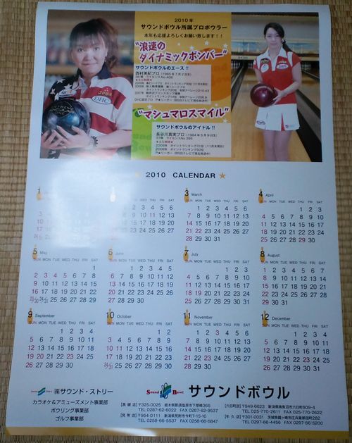 ホームで行われた新春初投げ大会に行ってきました。受付で干支石鹸とオリジナルカレンダーを貰いました。気分良く大会が始まりましたが、結果は散々でした(涙)前半はボールが奥で動きすぎ制御できず・・・。3G目からゆったり曲がるHARV2で善戦しますが、ビッグが打てず終わりました。優勝は同じBOXのMさんで1446!(1G目290、6G目289)私はしぶとく15位で飛び賞GETのみ(自分の下には2、3人しか残っていませんでした)Ave193.3 +ハンデ91ゲーム目の10ピンミスは何とパワーゾーンで投げてしまいました。ラインに乗って「OK!」と思った瞬間ボールが曲がり、その時に青いボールということに気付き愕然としました(まさかボールを間違えるとは!!)2ゲーム目は何やってもストライクが出ず、途中でレッドアラートブラストに変えてもダメで大きくスコアを落としました。3ゲーム目からはHARV2で何とかミスを少なく耐えましたが、今イチ波に乗れず終わってしまいました。打てるレーンなのに歯がゆい思いをしましたが、上級者のMさんと話をしたり、実際の攻め方を見て勉強になりました。今日は(後半特に)投げミスは減っていたので良しとします。ラインの勉強はまだまだ長い道のりです。