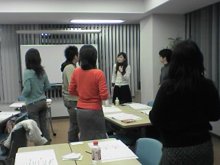 みなさんこんばんは。今日もありがとうございます。今日は夜、「人に好かれる話し方教室」集中講座でした。平日の夜に2時間集中で「人に好かれる話し方」のエッセンスをお伝えしているこの講座、今回も北海道、宮城、長野など遠方からご参加くださった方々もいらっしゃいました。(全然本題と関係ないのですが、宮城からお越しくださったI さんとお話しているうちに、実はI さんとわたしの姉が仙台の大学時代の部活仲間だったことが判明してものすごく驚きました~。)こちらはみんなで立って発声練習をしている模様(↓)たったの2時間の中でも・空気作り・陽転思考・聞き上手・呼吸・発声・語尾マシュマロ・右脳でイメージなど、もりもり沢山なんです!この集中講座、本当は来月は設けていなかったのですが、あまりに人気なので来月も急きょ開催することにいたしました。2時間で話し方のヒントを得たい方も、長期のコースが気になる方もぜひぜひいらしてくださいね♪今日も「ぽち」お願いします!(人気blogランキング)