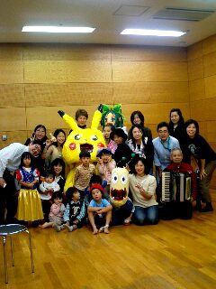ロシアのエレーナ、アコーディオン奏者チェリーさん、うわさのピカチュウに、お尻カジリ虫三兄弟にプリキュワの何とか(すみません、、名前が出てこない)、かなり感動的な異人種交流になりました(☆o☆)特大ピカチュウと一緒にみんあでフルーツバスケットができるなんて、信じられない!!!