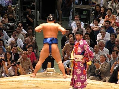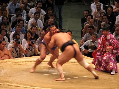 先日のニュースで、マラソンの 川内優輝 選手がエジプトの大会に招待されたものの、いざ成田空港から出発する前にパスポートを忘れたことに気づいたため、予定の便に乗れなくて約80万円を自腹で払ってエジプト大会に参加したとありました。まあ、そこまでして参加した大会では新記録で優勝したし、帰りの便ではエジプト大使館の計らいでキャンセル扱いとなって、幸い25万円が戻ったそうですが、・・・それにしても川内選手はなんて真っ直ぐな方なのでしょう。こういうとき 「大会を欠場します」 となっても、たぶん多くの人々は言葉では彼に批判をあびせつつも、内心は 「まあ仕方が無いか。80万円の自腹は痛いよな。」 となると思います。でも彼は違っていました。大会に参加すると伝えた以上は、もちろん自分の落ち度だけど、たとえ自費で給料3ヶ月分が消えてもちゃんと参加する。彼の真面目で誠実な人柄がうかがえる出来事だったと思います。私は川内選手を、いい意味で 『愚直』 と表現したいです。そして、いい意味での愚直な人がもう一人。大相撲で人気力士の 高見盛 関 。私は親しみをこめて 「タカミン」 などど呼ばせていただきますが、彼もまた土俵での勝負に挑むときは逃げ隠れなしの、立ち合いで向かってくる相手を変化などで避けることなどけっしてなく、常に “真っ向勝負” のお方です。私はタカミンが約10年前から、あの土俵入りの際に闘魂注入・・・じゃなくて気合注入をやる儀式を見ていましたが、あれもホントにずっと続けているのです。取り組み前の儀式、取り組みの型、どれもずっと変わらず。たぶんプライベートも含めて、ナニゴトにも真っ直ぐ一直線。もう愚直としか言いようがない感じです。でもそれゆえに、彼は老若男女問わず愛されていると思うのですが。私たちのふだんの世界が、真っ直ぐだけでは生きていけないことが多い分、素直に努力して真っ直ぐ戦っているスポーツ選手を見ると、私はなんかホッとするのかもしれません。2007年の名古屋場所に観戦に行ったときのものです。いつでも真っ向勝負。 これぞ力士であり、スポーツですよね。