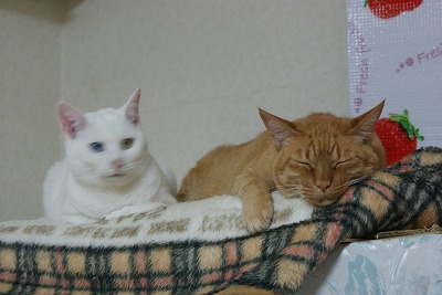 正月の三が日が明けた今日は、ぼちぼちと仕事始めとなっているようですね。年末に我が家の録画機器が故障し、今日の夕方にそれの修理の方が我が家にやってきました。HDDに録画してあったものは、初期化のため全消去にまあ大事なものはだいたいはDVDにコピーしてあったけど、それがやってなかった分は私の記録から消えていきましたあー、ディスク内はサッパリしたけど、なんか寂しいような。それでも今月末に保障が切れるギリギリに間に合ったので、まだ救われたのでしょう。それに修理の方が作業をしている間にいろいろお訊ねして、少しは機械の勉強にもなったしPC内のデータ(大半は画像)も消えたら悲しいので、不定期ですが一応、外付けHDDにコピーはしてあります。でもまだこの秋以降の分がやってないので、早くしなくちゃ。そのPC内には、我が愛しのペット連の写真もたくさんあります。その中の一部ですが、ご紹介しますね小太郎が気持ち良さそうに寝ているこの場所は・・・エアコンの温風が吹く場所です。昨夏に部屋の模様替えをしたとき、ここに棚をもってくればニャンズは喜ぶと確信してました私の予想どおり、ここはニャンズのお気に入りの場所になりました。ただエアコンは電気代がかかるので、基本的に起床時と就寝時の1時間ずつ、計2時間しか入れてません。小太郎の、アゴをちょんと前に出すこの寝方は、実は赤ニャンのときからでしたリリーちゃん : 「むふふ お兄ちゃんの赤ちゃんのときの写真を見ちゃったわ お兄ちゃんって、昔からこうだったのね。」お日様があるとき、羽組はこうして暖を取ります。朝晩と夜中ずっと、温風ヒーターを入れてます。最盛期は、文鳥10羽、インコ5羽(計15羽)いたけど、だんだん数が減って、今では2羽だけになりました。私がリビングにいるときに、小太郎も2階から下りてきました。しっかりTV観戦の邪魔をしてくれています。でも小太郎は可愛いから、許します