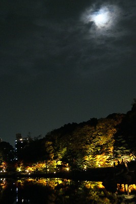 ふだんたいした労働もしていないのに、最近なんだか疲れが抜けなくてスッキリしない日が多いです。そこで毎度のことですが、我が家からはやや遠いけど、あま市の健康センターに行ってきましたここは強烈な薬湯があるので、それがお目当てです。薬草の中にはおそらく生姜や唐辛子が入っているので、身体はたちどころにポカポカに温まります。そして身体が熱くなると、熱った身体を少し冷ますのに、庭に出て外気に当たります。その庭のふちのほうには木が植えてあり、癒し系の石像が数個置いてあります。その中の一つが七福神の布袋和尚さまとよく似た感じです不思議なものです。このにっこり笑った像を見ていると、いくら苛立っていても凹んでいても、「あんた、人の顔見て何で笑っているよの!」 なんて気持ちにはなりません。にっこり笑った像を見ながら、自分もにっこりしてしまいますちょうどいいですね。ふだんの生活では、意識して笑顔になることがないので、口角が下がってますますオバサン度が進んでしまいますだからここで、にっこり口角を上げる練習でも私の思いを知らない人が傍から見たら、「ハダカの女が石像を見てニタニタしている」 だけなんですよね。ホラーか・・・。 ヒィィィ(゚ _ ゚;ノ)ノさて昨日に続き、昨年撮ったライトアップの 徳川園 (名古屋市東区) をUPしました。日本の晩秋を感じる紅葉は、名所なんて言われてしまうともうどこも渋滞&混雑で、現地にたどり着くまでにエネルギーが消耗してしまいますでもこの徳川園は名古屋という都会の中にあって、静かに落ち着いて紅葉を鑑賞できる穴場的な名所だと思います。池が大きく水がきれいなのでライトアップの光がたくさん映りこみ、美しさも倍増でした四季折々の美があって、私のお気に入りの場所になりそうです。この日の月は雲に隠れていました。この徳川園は東京ディズニーリゾートのように周囲の視界を遮っていないので、名古屋市内の高層ビルが向こうに見えています。位置は少しずれていますが、ほぼ同じ場所で約1年前に撮ったものです。快晴の日だったので、水のきれいな池に空が映りこんでいます。徳川園を1周してきました。それほど広くない庭園なので、ただ散策するだけならあっという間です。でも写真を撮りながらだったので、けっこう時間がたっていました。
