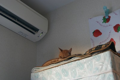 最近は1月の冬本番の時期らしく、寒いですね昼間は晴れて日差しがあれば部屋の中はまだ暖かいけど、朝晩は特に冷え込みます。さて、私の日常の事ですが、昨年末から歯医者に通っています。飴を 「がちっ」 と噛んだら、かなり以前に治療した歯の詰め物が、飴とともに外れてしまったのです。前回も同様に、飴で歯の詰め物が取れて通いました。カルテによると、前回行ったのは4年前の冬でした。4年の間に虫歯その他が増えていたため治療に時間がかかります。なので、しばらくの間は通院です。ちなみに今日は、古い詰め物(アマルガム)を取ったら、それの下で虫歯が進行していて、先生もびっくりの緊急の処置となりました。先生いわく、「麻酔をかけると歯を削り過ぎてしまうので。」ということで、痛いのガマンの治療でした (>□<”)あがぁーああ、こんなときは家でゆったりと癒されたいものです。そこで我が愛しの “癒し隊” に登場してもらいました暖房費を節約するため、家の中にいても服を着込んでます。ケチなご主人のために、ニャンズは身を寄せ合って寝ています。でも朝起きたときと、夜寝る前の1時間ずつは、エアコンを入れて部屋を温めています。エアコンのスイッチが入ると、小太郎は真っ先にエアコンの温風がくる棚に上がっていきます。ある日の朝の光景です。「ここのフタが開くと暖かい空気が流れてくるんだよ。ボク、知っているんだ」寒がりの小太郎はこの温風が大好きで、ここはお気に入りの場所です。我が家に来たときから小太郎に面倒をみてもらっているリリーちゃんは、小太郎兄ちゃんが大好きです。なので小太郎の行く先々を追いかけていきます。私がカメラを構えているのが落ち着かないのか、リリーちゃんは降りていきました。この狭いスペースに足を4本置いて、ニャンズの素晴らしいバランスですね。特に意味はないけど、小太郎が顔を決めてくれました。今日は寒いので、夜に寝る前じゃないけどエアコンを入れました。たまには、ガマンしなくてもいいよね。