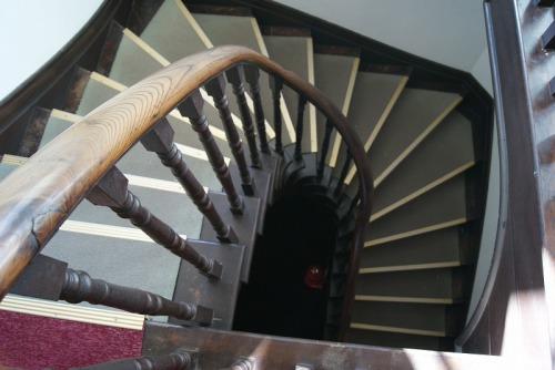 昨日も今日も快晴さほど寒くもなく、絶好の行楽日和です。私もそれなりに行ってみたい場所はあるものの、「どーしても!」というほどでもないので、結局はの散歩と買い物という、日常の外出のみでした。UPした画像は、愛知県犬山市にある 明治村 に先日行ってきたときのものです。私がこの村の中でいちばん好きな 西郷從道邸 。この日はたまたま、ふだん自由に上がれない2階へのガイドツアーの時間と重なったので、ちょっと覗いてきました今回UPしたのは、画像をクリックすると大きくなります。2階に上がるときの階段。上記リンクでも紹介がありますが、優美な曲線であるだけでなく、ロングドレスをお召しになった貴婦人が 「手すりを持ったまま、優雅な姿で昇降できる」 という優れものだそうです。 2階の客間、その1です。ソファ、瀬戸焼きの暖炉など、どれも由緒ある文化財ばかりです。 2階のバルコニー。柵が洒落たデザインであるだけでなく、バルコニーの床面に微妙な傾斜がついていて、雨が降っても水が外に流れていくようになっているそうです。 2階の客間、その2です。ソファの枠は竹でできていて、さらにその竹には金箔と螺鈿の細工が施してあります。 使用人はお客様の邪魔にならないよう、外の通路を行き来していました。この先は入れないので近くで見ることはできませんが、 「手作りガラス窓の微妙にゆがんだガラス面」 が、この時代らしく、味わいがあっていい感じです。