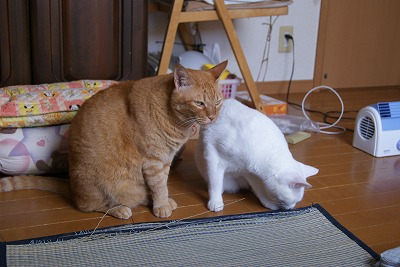 今日は気持ちの良い青空でした11月にもなれば、日差しがあたってももう暑くはないです。だから今日、ベランダに取り付けてあった日除けのすだれを外し、お日様を部屋に取り込むようにしました。部屋の中が、とても明るくなりました。暑い時期は辛かった太陽光も、寒い時期は恩恵の太陽光です。人間って、勝手ですね。さて少し前の、まだ暑さが残る頃の画像ですが、このままお蔵入りするのもさびしいので、UPしました。家の中が整頓されていない部分は、武士の情けで見ないようにしていただけるとありがたいです。我が家の末っ子リリーちゃんは、まだ遊ぶのが大好きな3歳で、退屈がニガテなお年頃。ちょっとしたことでも興味を持って、遊びにしています。綺麗な子だから、なにやっても、可愛いのよね~。。嗚呼、親ばかなり。 どうかお許しあれ。リリーちゃん : 「ねえ、お兄ちゃん、この下には何があるの?」小太郎 : 「そんなこと、わかんないよ。リリーが自分で調べてごらん。」 リリーちゃん : 「アタチがめくってやるわ。 えいっ!、・・・あれ~?」 リリーちゃん : 「なーんだ、なんにも無いわ。 つまんない。 虫さん(リリーちゃんのおもちゃ)ぐらいいてくれたらいいのに。」 リリーちゃん :「ねえ、お兄ちゃん、どうして何にもないの? アタチ、つまんないわ。」小太郎 : 「そんなこと、ボクに言われてもなあ。。そうだ! もうじきリリーの お祝いがあるから、えみりーさんに言ってみたら?」