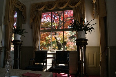 今日は久しぶりに、別の仕事で名古屋に出ました。私の本業は基本、午後から夜にかけてあり、ふだんは車での移動なので、朝の通勤通学の時間帯に電車に乗るというのは、これの前がいつだったか記憶にないほどです。車内は、ぎゅうぎゅう詰めではないものの、押し合い圧し合いな感じで混雑していました。どの駅で、どれくらい人が乗り降りするかがわからず人の波にただ流されて、乗っている間に車内での位置があちこち動いていました。人混みでうっかり降りそこねたら・・・土地勘のある名古屋だったら、次の駅で降りて別のルートで行ってあっちの駅で降りて・・・ってできるけど、東京や大阪でコレをやったら、私はかなりあせりますね。ヾ(・_・;)/ あー。方向オンチとまでは言わないけど、本能的な感覚が弱いので。ハト並みの方向感覚のある方に、私は憧れてしまいます。画像は、愛知県犬山市にある 明治村 です。前回の日記に続き、 西郷從道邸 です。今回UPしたのは、画像をクリックすると大きくなります。庭に面した食堂の窓から見る紅葉。毎年、コレが楽しみなのです。テーブルもクリスマス仕様になっていました。 2階のテラスから見た明治村の風景です。(2階は見学できる時間帯が決まっています) 西郷從道邸の入り口を入って、左手すぐにある婦人室。明るい色合いの柔らかい雰囲気で、見ているだけで訪れた人の気分もレディになります。 西郷從道邸の外観です。白亜の建物に、青空と紅葉と緑が映えます。