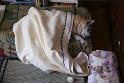 今日は木曜日で、1週間のサイクルのうち、今やってる仕事のいちばんハードなのがある日です。なので終わって帰宅すると、ホッとします。精神的に充実している仕事です。ただ歳とってアタマの働きが落ちているため精一杯アタマ使ってやっているので、仕事が終わると脳みそがカスになってます。こんなときは、なーんにも考えずに日々を過ごすことがふつうである四足組と時間を過ごすのが、私にとってなによりの癒しでしょうか。可愛い我が家のメンバーたちふだんはこんなことして過ごしています長女のチビ子嬢。この画像はまだ暑い時期のものですが、エアコンをかけていたので、冷気が心地良かったのでしょう。綿毛布を自分で器用にめくって、中に入って寝ていました。(これは私は一切、手を出していません) 綿毛布の中にもぐるのは、実は末っ子のリリーちゃんも好きなのです。彼女も自分で毛布をめくって、中に入りこんでいました。 さて、お兄ちゃんたち(チビ子嬢にとっては弟たち)はどうかというと・・・昼間は中にもぐって寝るのは好きじゃないらしく、私の邪魔をしながらふたり一緒にテーブルで横たわっていました。邪魔だけど、こんなに大きく育ったことが嬉しいです