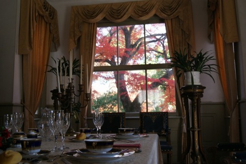 夕方からなんか、急に寒くなってしまいましたね。たしかほんの1カ月前は、昼間に外に出て撮り歩きをしていると、暑いとさえ思えたほどだったのに。今年はどうやら、「長い夏 ⇒ ちょっとだけ秋 ⇒ いきなり冬」そんな感じさえします。そしてもう11月も半ばになってて、2013年もあと1カ月半に。NHK大河ドラマの 『八重の桜』 もいよいよ終盤になり、残すところあと少しになりました。このドラマ、中盤のクライマックスの会津戦争が終われば、もう見る気がなくなるかなー、とはじめは思っていました。ところが意外にも、私にとっては後半のほうがなんとなく見やすい感じがあります。前半の幕末期は激動の時代で、セリフの一言一言にも緊迫したシーンが続きました。ドラマを見ているだけでなんかこう身体に力が入って、少々疲れた部分もありました。でも明治になって、新しいものを作り上げていく世の中になりました。政府も八重やその周辺もまだまだ葛藤と混乱の中にあって重苦しい部分もあるけれど、それでも新しく時代が変わって、前に進んでいく姿には興味をひかれます。私の場合、史実とかドラマの内容とか、役者さんの感情表現とか、面倒なことはほとんど考えずに、明治時代の風景や人々の暮らしといった風俗をゆったり眺める感じでドラマを見ているから、それなりに面白いのでしょうね。なにより、綾瀬はるかさんの、ハイカラレディの姿がいいです。髪をアップにしたドレスの洋装は、江戸時代の丸髷に着物の姿よりうんと似合うと思います。ファッションを楽しむという意味では、鹿鳴館での夜会のシーンをもっと見たかったですね。会津の名門、山川家の娘である大山捨松さんが、語学と才気を活かしてどんな活躍をするかとか。まあ八重が主人公だから、鹿鳴館は軽く終わってしまいましたが。さて、この後はどんなラストになるのか。ここまできたから、ゆったりと見届けようと思います。ああ、そういえば11月は、 明治村 の年間パスポートの更新があるんだった。早く行ってこなくちゃ。私のいちばん好きな場所の、『西郷從道邸』 です。この、「窓越しに見る紅葉」 がきれいなうちに行っておきたいです。