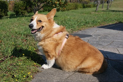 もう11月も後半になりましたね。とういことは、今年もあと1カ月半で終わりかー。私はこの夏過ぎからなにかと忙しくなり、こちらに記事をUPするのもすっかり不定期になってしまいました。でも、この忙しさに文句はありません。自分のこの先のために、役に立つことをやっているのですから。それにときどきはお出かけもして、ちゃんと楽しんでいます。これは先月の天気の良かった週末に、ちょっとドライブを兼ねてお出かけして、休憩で立ち寄った公園で撮ったものです。我が家に来てちょうど1年になる、コーギーのみーさん。長い間せまい小屋に閉じ込められてきたせいか、お外の世界に触れるとすごく嬉しそうです。公園とかの広い場所に来ると、走り回るどころか 「どしっ!」 って感じで腰をおろし、あたりを眺めて、ただお外の空気を感じて、嬉しそうにヘラヘラ笑っています。動かない・・・笑う・・・。モデルさんにはちょうどいいです「ん?えみりーさん、アタシを呼んだ?」みーさんは、あるときはこうしてニヤリ・・・と笑い、 カメラ目線をくれて、にこっ♪と笑います。 そういえばリュウ君(虹の橋)も、いろんな表情をしてくれる子だったなあ。コーギー犬って、表情が豊かなのかしら?