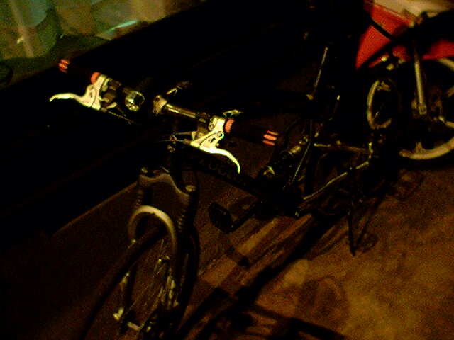 取りにいってきた!取りに行ってやっとこさどんなのだかわかったw名前:PEUGEOT TOMBATT 前後デオーレワイヤー式ディスクブレーキ XLブレーキレバー(シフトレバー一体型) パナレーサー スリックタイヤ まぁノーマルと違うところはドリンクフォルダとかライトいがいでこんぐらいwのってみて・・やっぱスリックはだめだwダートはしりたかったので少しはしってみたけど・・無理!!さらにリアサスが最悪だ;やらかすぎてまともにトラクションかかんないwまぁこっからいろいろとやっていこうwあ・・あと俺的にはリアサスいらねw沈んだときにチェーンが空回りするwだから~とおもっていとこにもらったデバイスつけようとおもったら・・・あらっ!大きさあわないねぇw買わなきゃなぁ~明日雨降らなきゃ近くのセオサイクルでも行ってタイヤ変えてこよwんでそのあと大宮第二公園で練習・・練習・・・・画:PEUGEOT TOMBATT暗くてわかんないから明日撮りなおそw